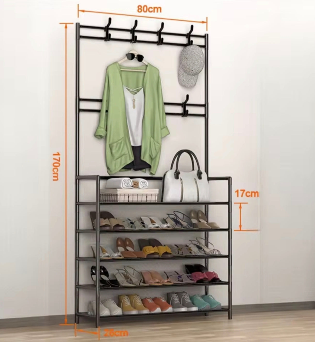 Perchero y zapatero multifuncional 5 niveles 170x80×28 cm color negro o blanco