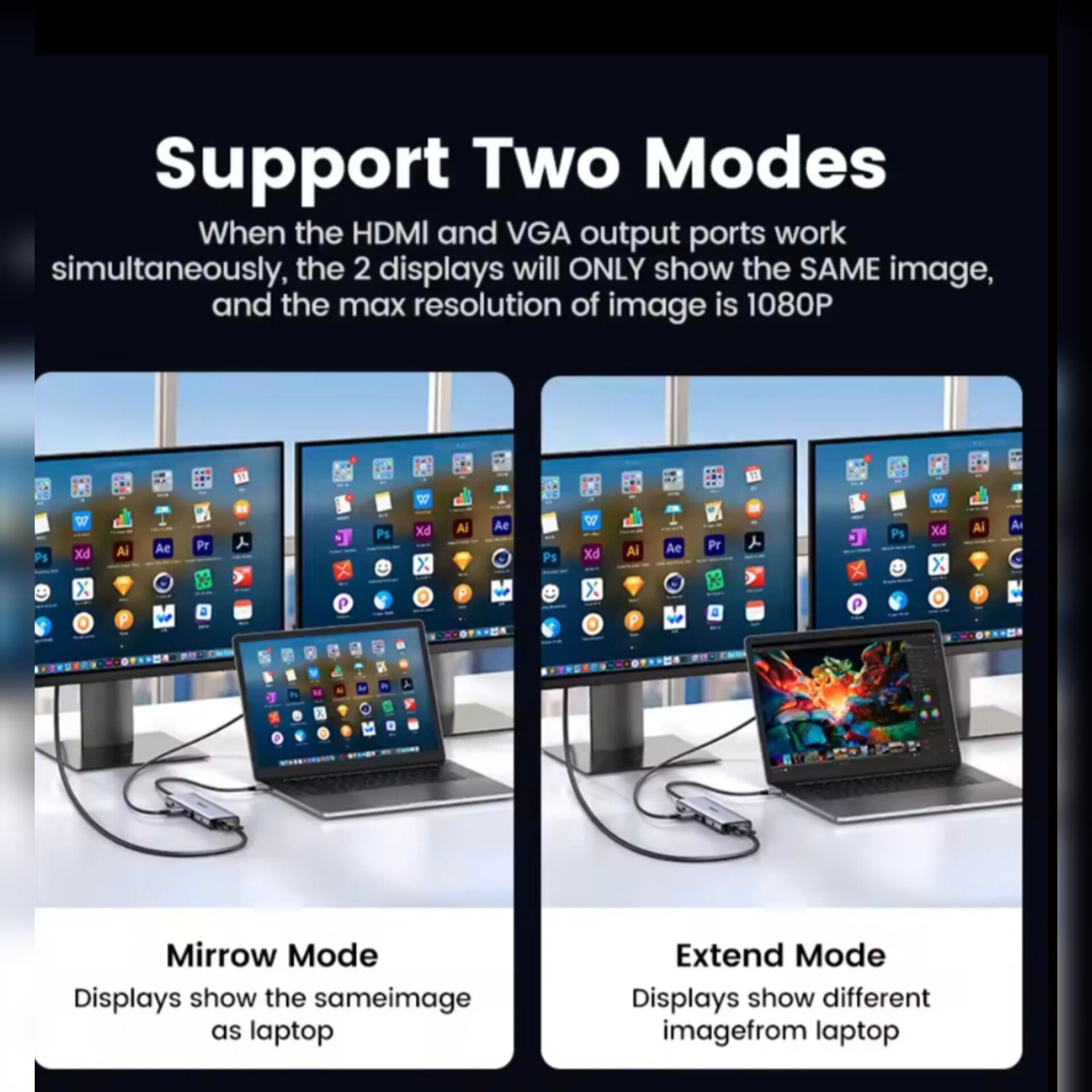 - Salida de video dual: conéctese a pantallas HDMI 4K y VGA 1080P simultáneamente para mejorar la productividad en pantallas más grandes.